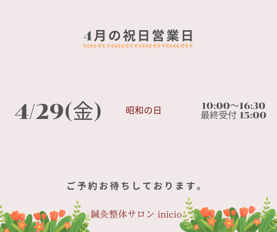GWまであと少し、春のリズムに合わせて、心身のバランスを整えていきましょう!